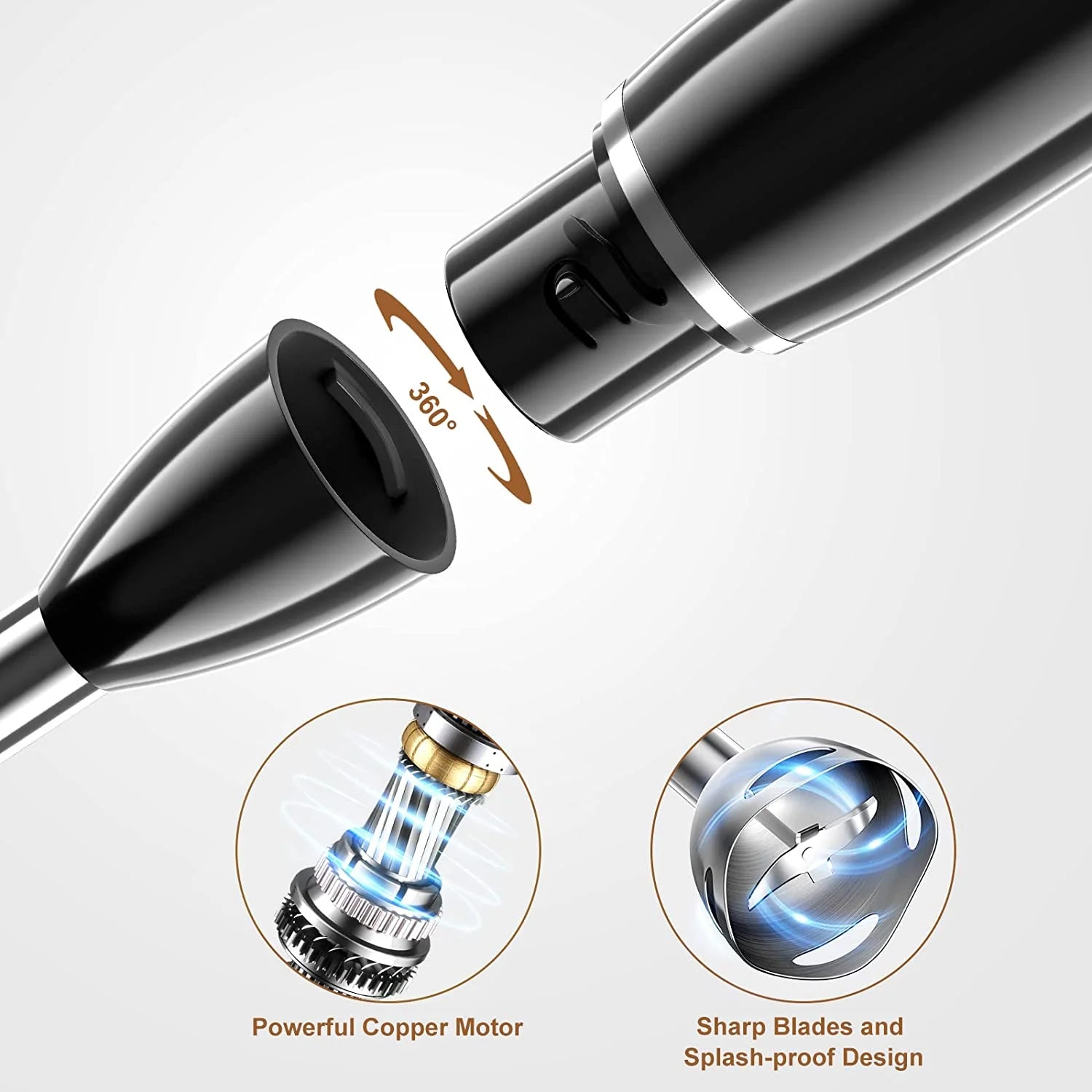 DEISNGB electric hand blender has 500W Powerful copper motor which makes blending task faster with Low noise. Features with titanium plated blade help you to blend the hardest foods easily. Anti-splash design keeps foods in the beaker from splatter.